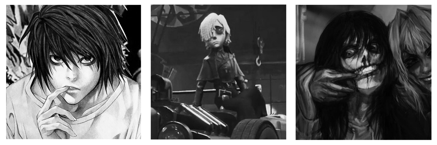 fear & hunger. bats. squid game. 3ds/ds games. alice in borderland. no im not a human. death note. coraline. the nightmare before christmas (and more tim burton stuff..). sally face. tomodachi life/collection. identity v. pokemon. creepypasta. art. various subcultures [goth, metal, visual kei...]. photography. drawing. lenore the cute little dead girl ....